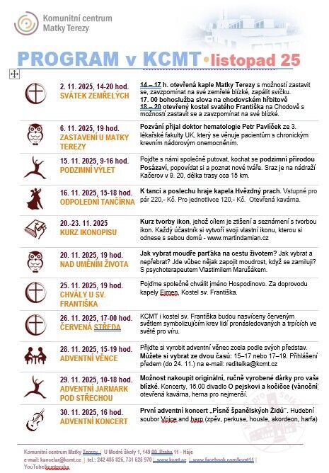 Přinášíme listopadový program akcí v KCMT a u sv. Františka.