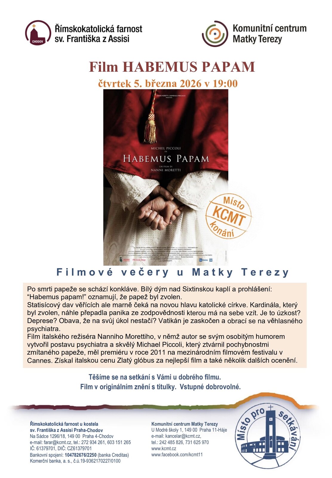 Statisícový dav věřících ale marně čeká na novou hlavu katolícke cirkve. Kardinála, který byl zvolen, náhle přepadla panika ze zodpovědnosti kterou má na sebe vzít. Je to úzkost? Deprese? Obava, že na svůj úkol nestačí? Vatikán je zaskočen a situaci svěřuje velehlasnému psychiatrovi.
